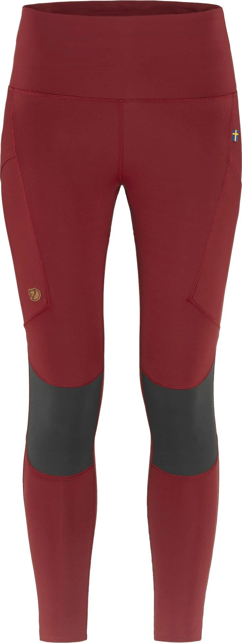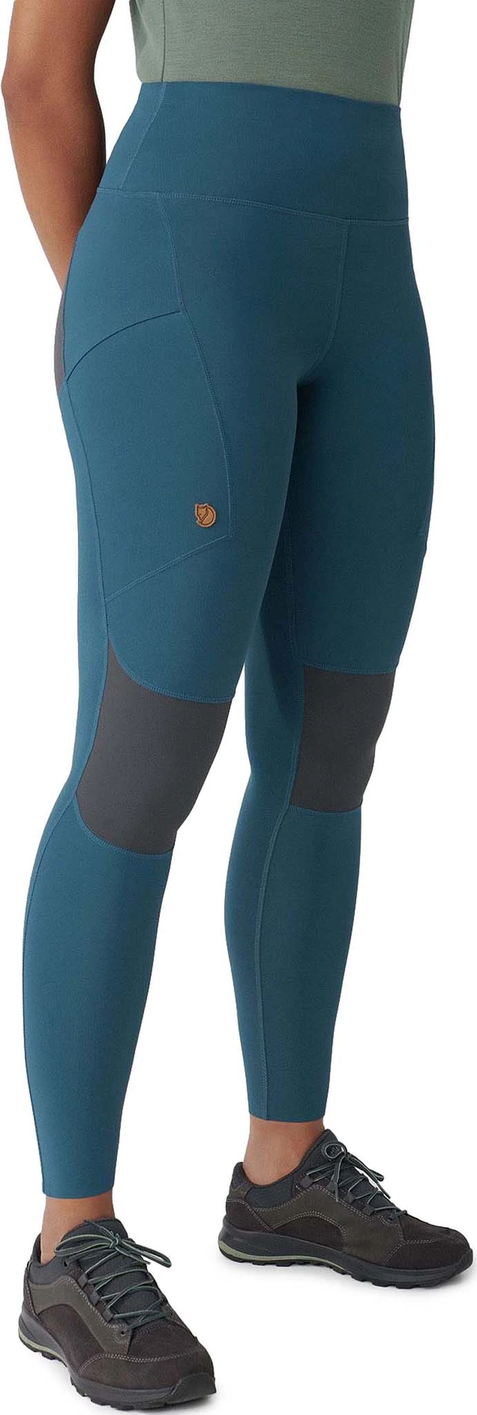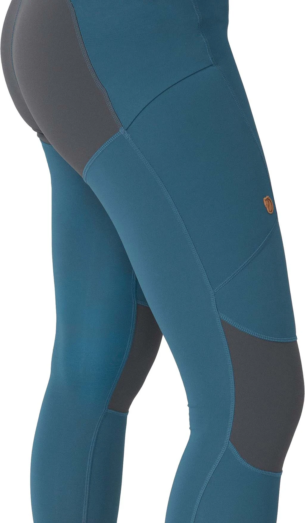 Abisko Trekking Tights Pro W are highly technical, made from a double-knitted, moisture-wicking stretch fabric with recycled polyester and a matte, opaque finish. The pockets are tilted for easier access and the 7/8-length legs fit really well with socks and hiking boots. Reinforcements in high-stretch Cordura offer extra protection in rough terrain or when sitting on damp ground.