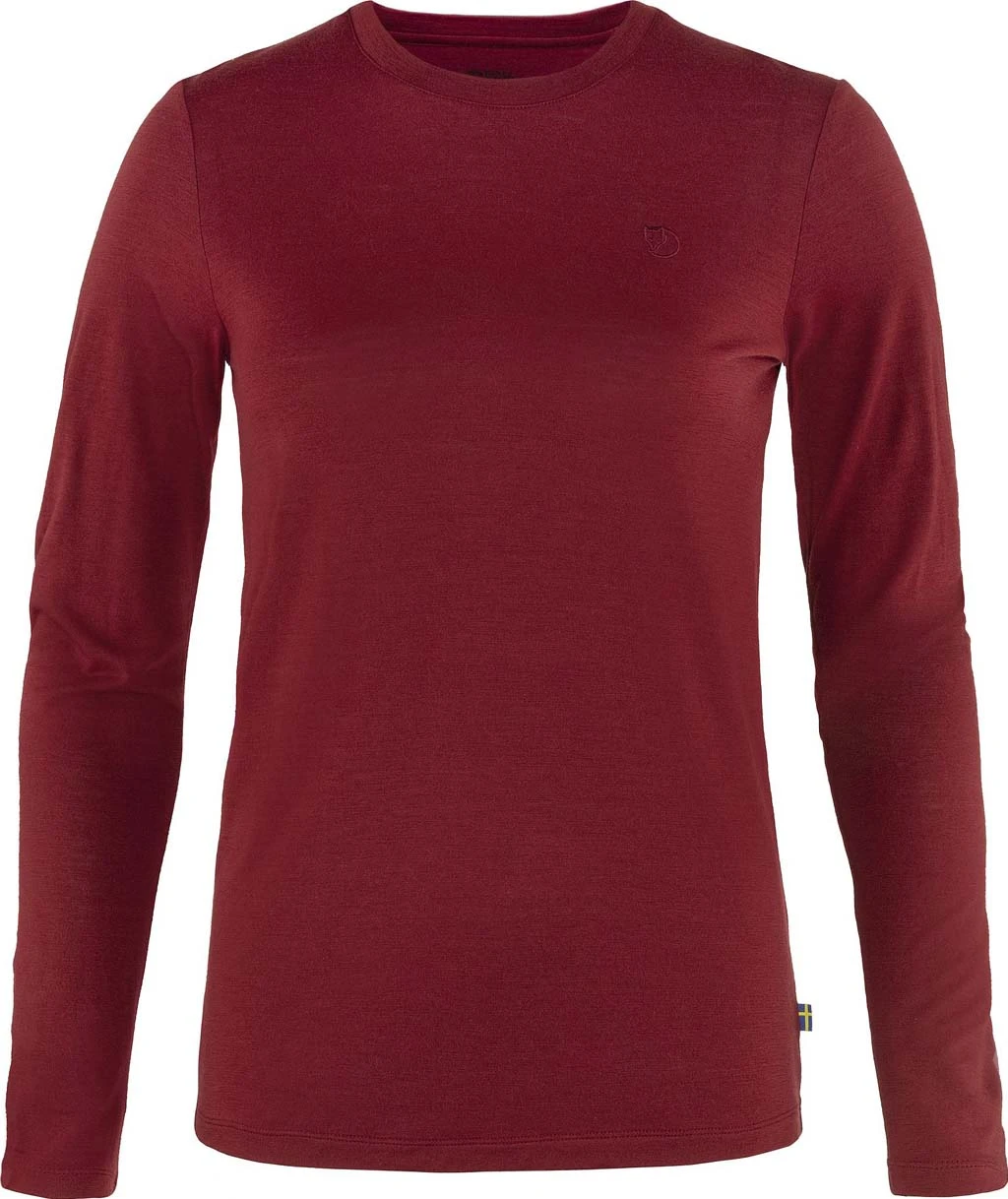 Lightweight, long-sleeved top in a soft jersey knit made from merino wool and recycled polyester. Combines the temperature-regulating properties of wool fibres with the durability and moisture-wicking properties of synthetic ones. A perfect first layer in both warm and cold climates, and extra useful on multiday trips as wool naturally resists bad odours.
