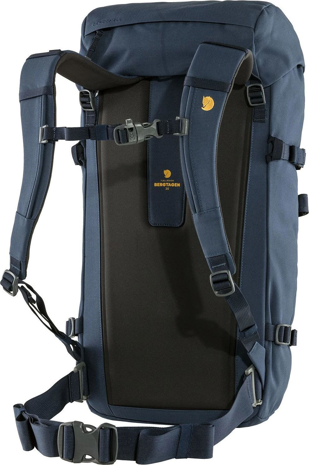• Attachment points for ice axes, skis and other equipment.|-|Lorsque la légèreté ne suffit pas et que vous recherchez la fiabilité et la solidité d’un véritable sac d’alpinisme, le Bergtagen 30 est idéal. Il est conçu pour des parcours techniques plus courts et offre toutes les caractéristiques nécessaires en montagne. Système de portage confortable et résistant à la neige, avec sangle ventrale amovible pour plus de polyvalence. Fabriqué en Bergshell, un tissu étanche d’une durabilité exceptionnelle conçu par Fjällräven, composé de 31 % de nylon recyclé.