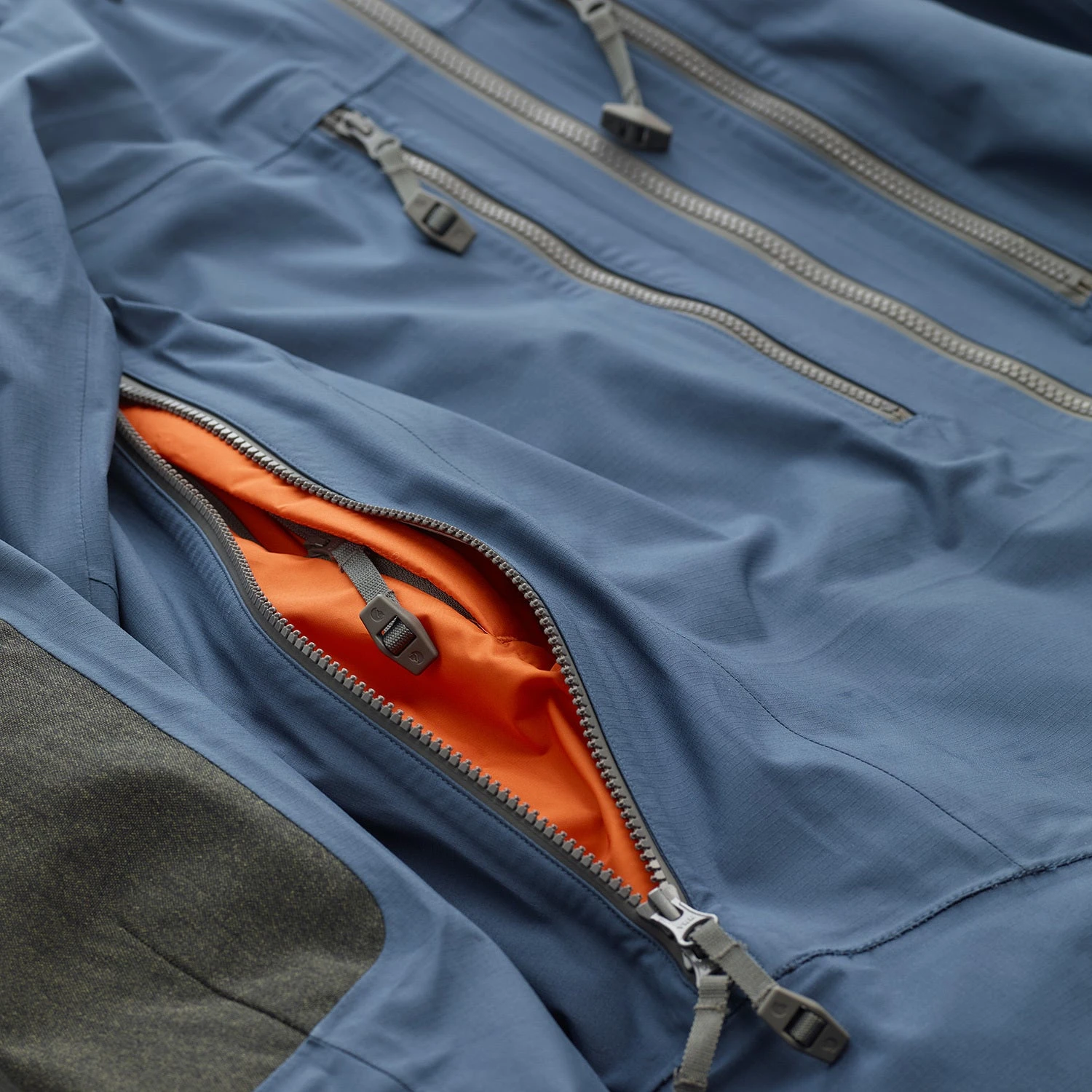 - Side venting zippers + easy-grip pullers