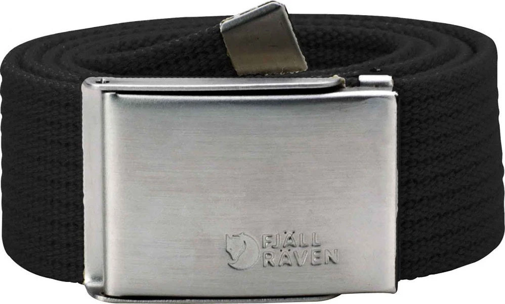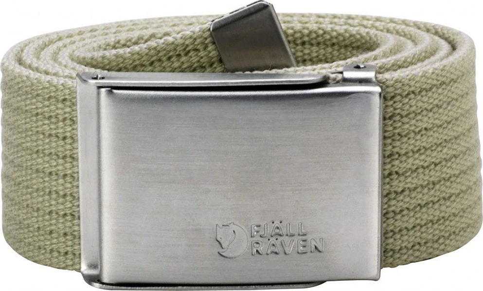 Canvas belt. Adjustable length and metal ‘military’ belt buckle.