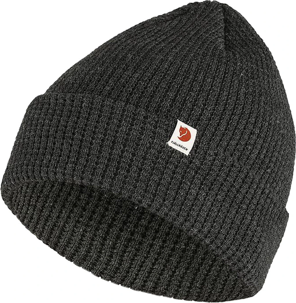 Soft, comfortable knitted hat in recycled polyester. Decorative waffle-knit with wide fold-up edge and little textile logo tab. The material wicks away moisture and dries fast, so it works well for both everyday life and when out in the mountains.