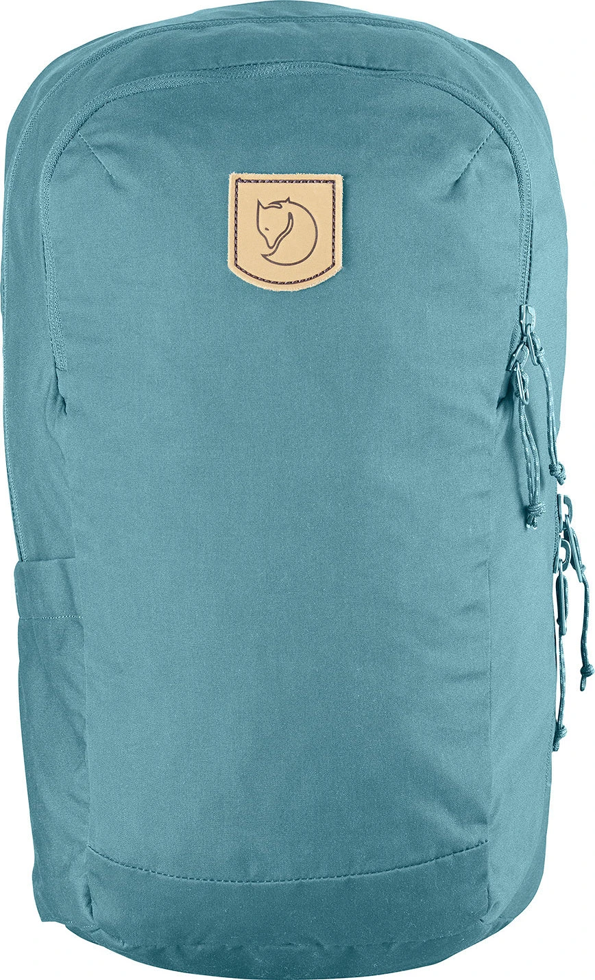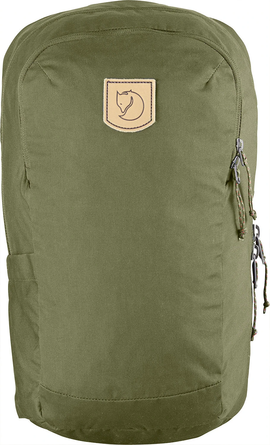 Made from durable G-1000 Eco in recycled polyester and organic cotton, with slightly padded shoulder straps and a mesh back panel for extra comfort. The main compartment has a security pocket with a key clip as well as a pocket for a water bladder (not included) with an opening for drinking tube. The zippered opening is asymmetric; it goes down further on one side making it easy to reach the contents of the main compartment when the backpack is still over one shoulder. Zippered front pocket and inside pocket for stowing small items, and there is also a side pocket for a drinking bottle or the like. Chest strap with whistle and a simple hip belt that can be detached when not needed. The G-1000 Eco fabric is waxed and resists moisture. For persistent rain there is a rain cover provided that can be stowed in one of the inside pockets.