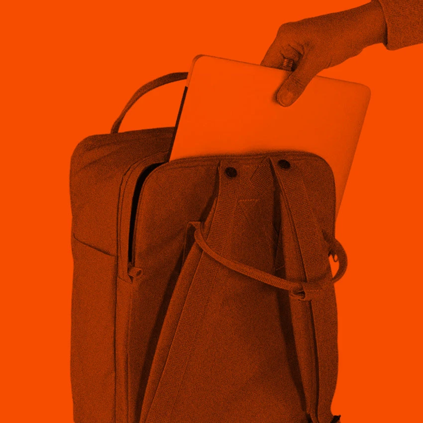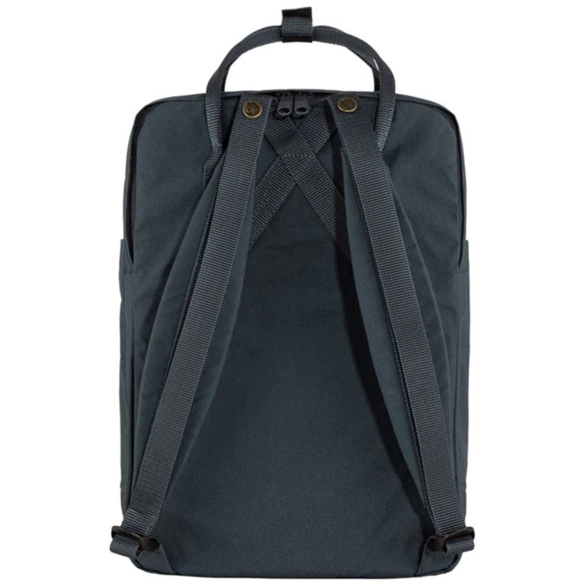The classic Kånken Backpack , with an additional padded laptop section sized for a 15″ laptop. Padded shoulder straps, top carrying handle, removable seat cover in the pocket at the back and a reflector in the logo. The laptop compartment is very well padded and cleverly situated on the outside of the bag, close to the back – keeping it safe and secure but easy to access when needed.
