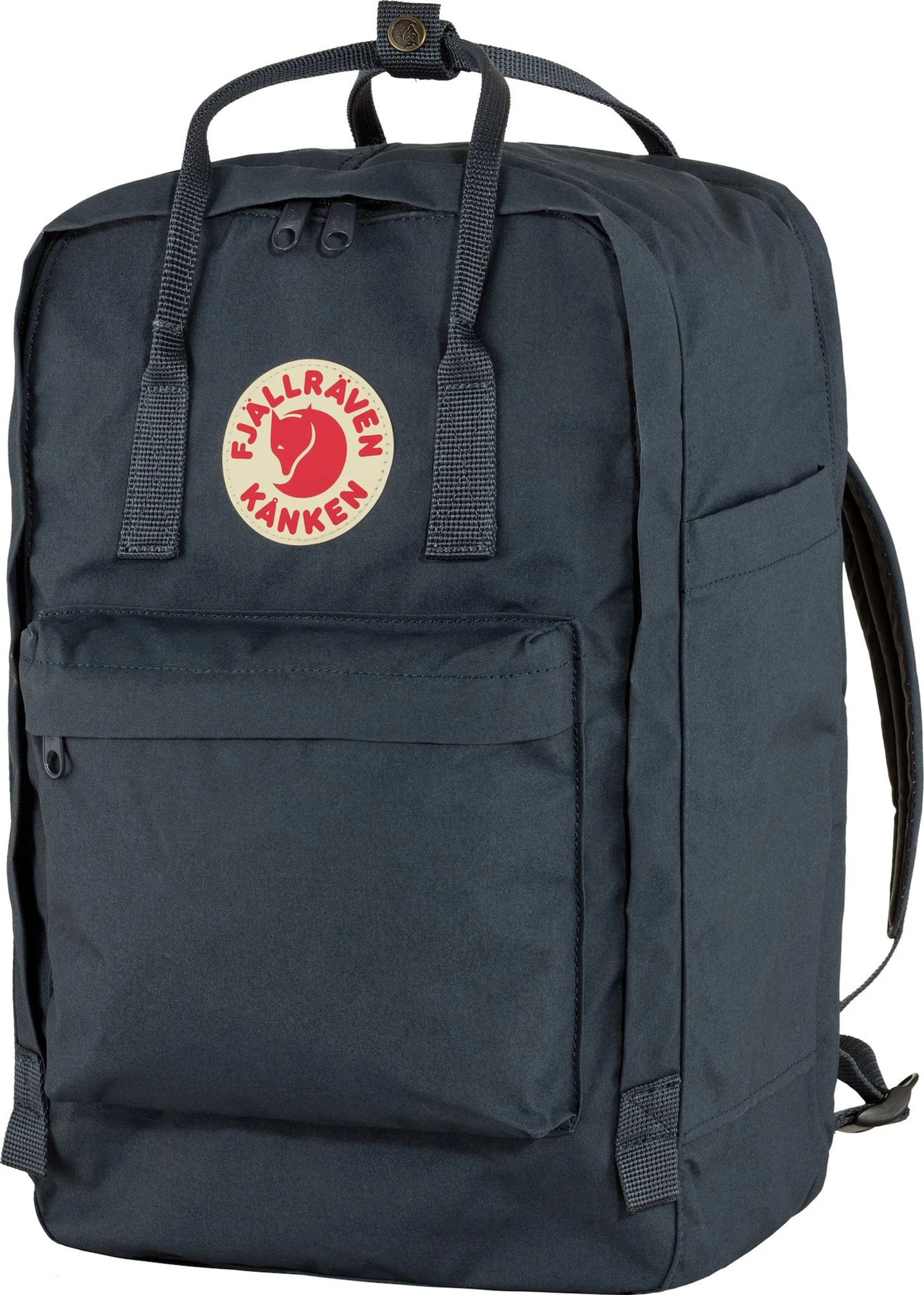 Laptop version of Kånken backpack-Kånken Laptop 17″ is made from hardwearing Vinylon F fabric and has a separate, padded compartment that provides safe storage for a 17” laptop computer. It has an extra zippered pocket inside the main compartment, zippered pocket on the front, two side pockets and comfortable padded shoulder straps.
