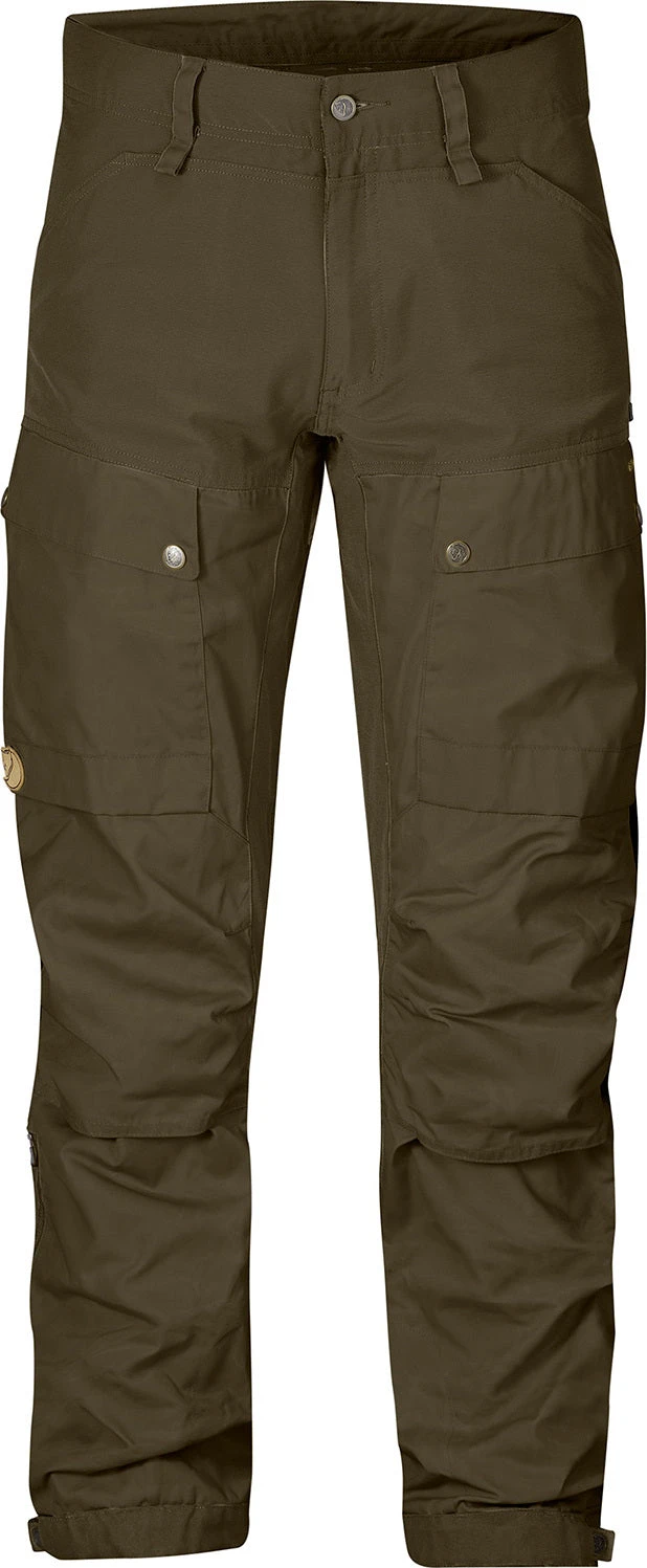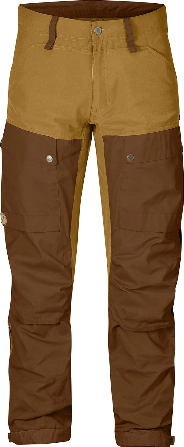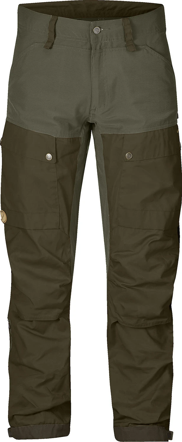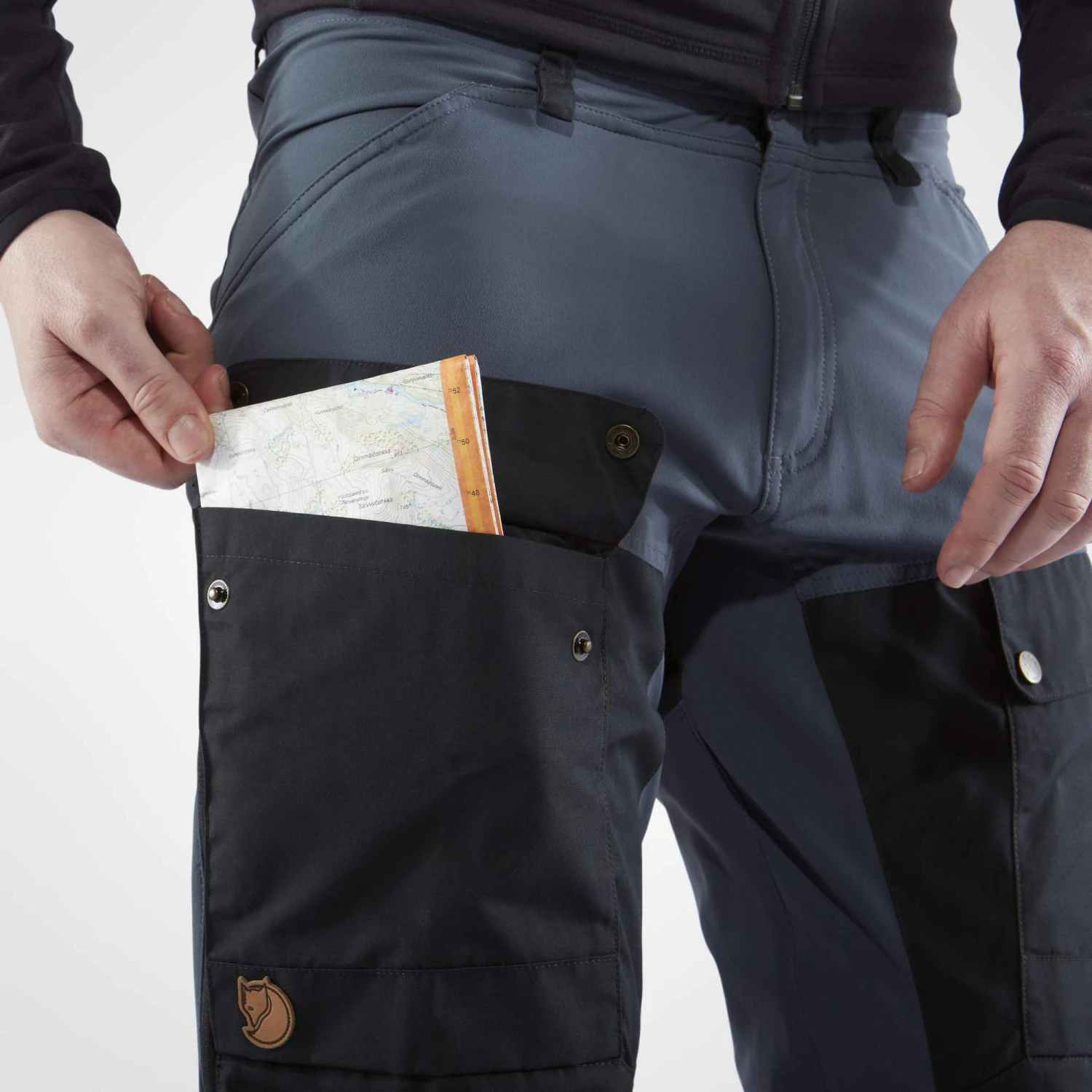 Fjällräven designed the Keb Trouser with an inner thigh seam that has been replaced by a fabric panel to reduce chafing. The pant also comes with a zippered ventilation opening from the knee-to-hip and another zipper along the calf to release leg heat. There are two leg pockets with cover flaps, one with a zip and the other with a mesh pocket inside for bits and bobs. High hand pockets hold their contents even when sitting down. Strap adjustment with button fastening and a separate hook help secure boots.