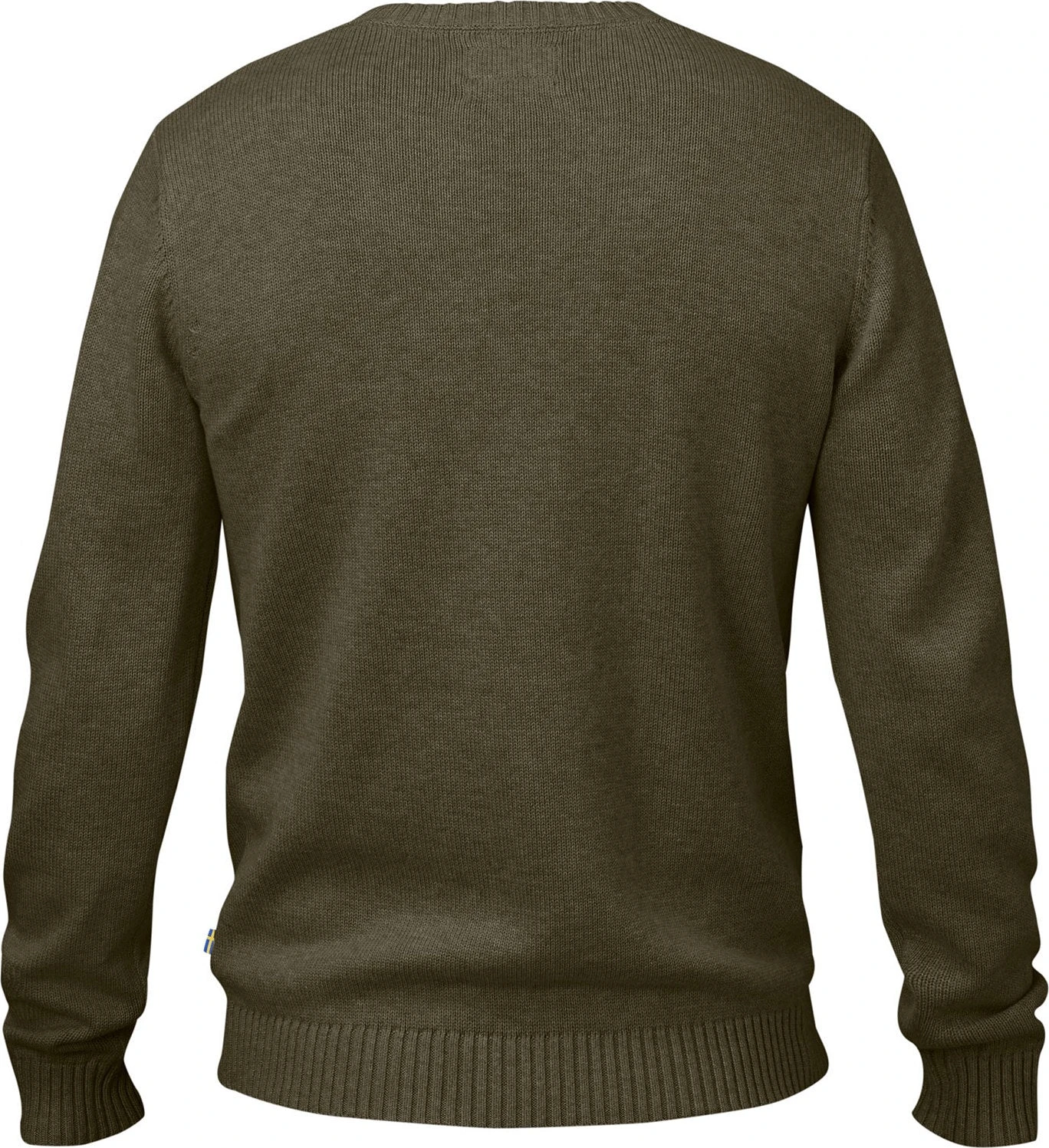 The men’s Övik Knit Crew is a timeless, flat-knitted sweater made from a soft and breathable blend of cotton and wool. Fjällräven outfitted this garment with a rounded neck and gave it ribbed panelling on the shoulders, along with a ribbed hem and sleeve cuffs. The Övik Knit Crew is a versatile, understated sweater, ideal for seasonal evenings by the campfire or for everyday wear around town.
