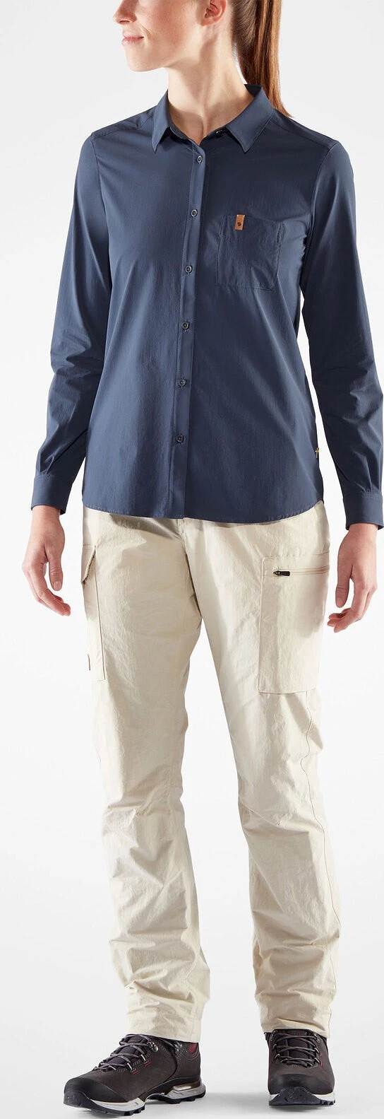 • Buttons made from recycled polyester.|-|La Övik Lite Shirt est conçue pour rendre les journées estivales les plus chaudes un peu plus agréables. Confectionnée dans un tissu stretch léger à séchage rapide, elle offre une sensation de fraîcheur sur la peau, même quand il fait vraiment chaud. Un style classique et simple aussi bien adapté à la ville que pour une randonnée le week-end, car les manches longues protègent vos bras du soleil. Idéale pour tous les jours et lors de voyages dans des pays chauds.