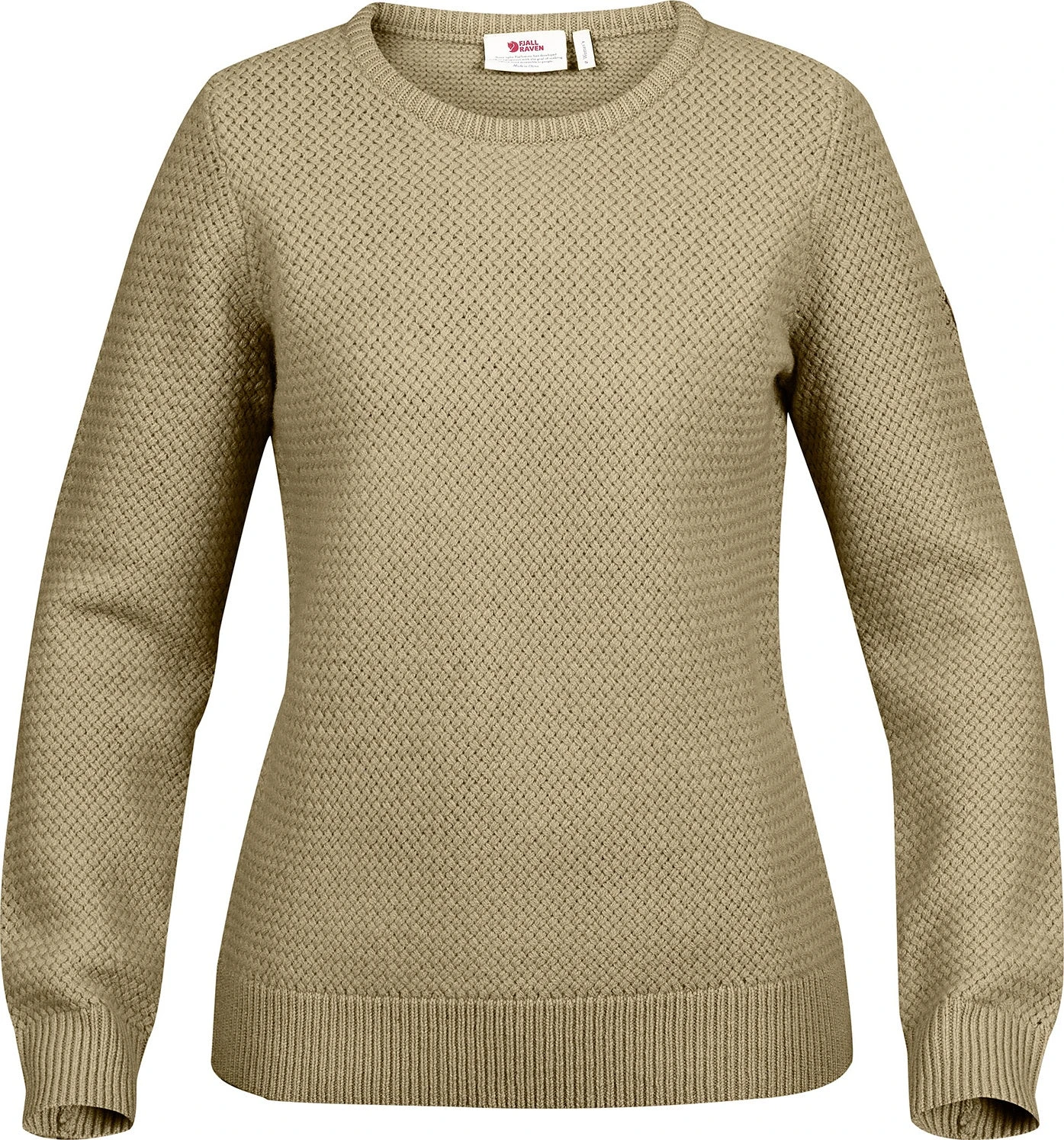 The women’s Övik Structure is knitted sweater made from soft lambswool that has a rounded neckline along with a ribbed hem and sleeve cuffs. It’s knitted in a technique that traps air in its fibres, keeping your warmth close to the body. The lambswool also wicks away moisture and insulates even when it is damp. These qualities make the Övik Structure an ideal mid layer on cold adventures in the forest or mountains, and a perfect piece for cooler fall days around town with or without an insulating vest. Fjällräven designed this sweater with a classic rounded neckline and ribbed the hem and sleeve cuffs.