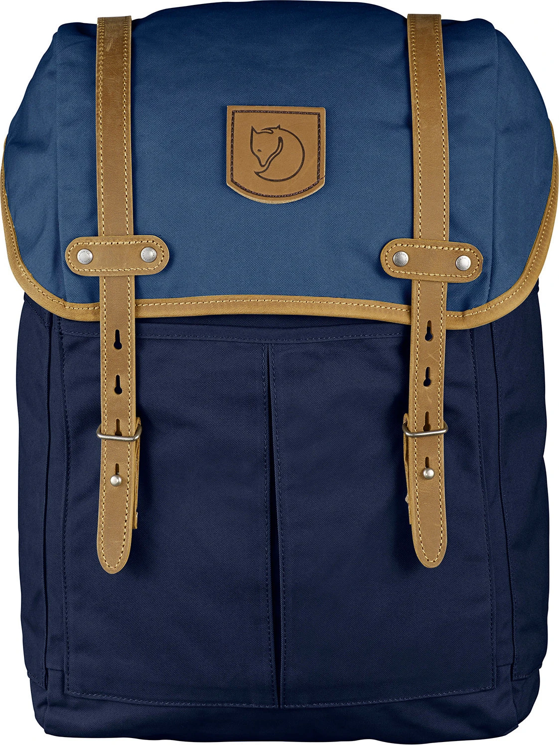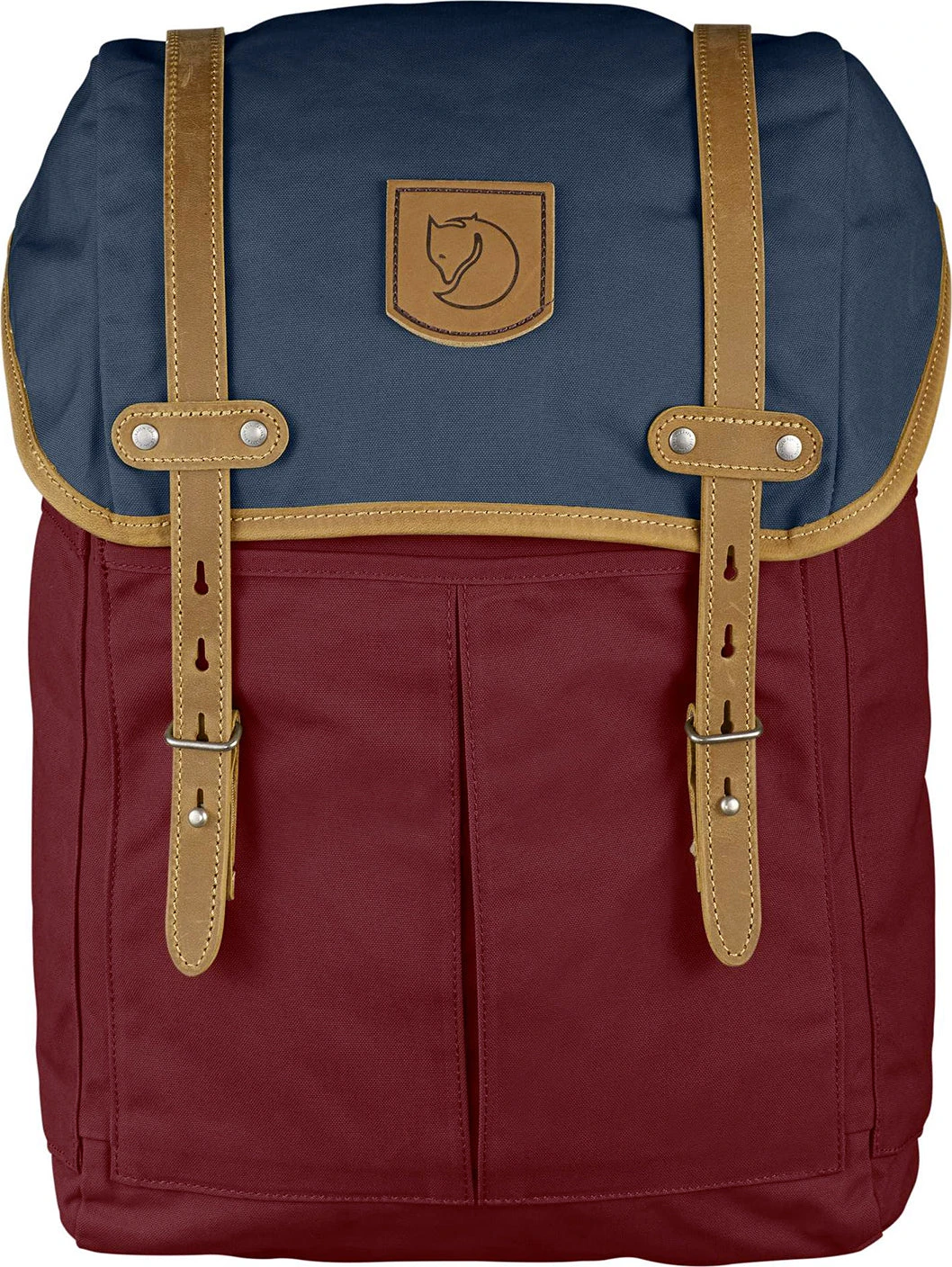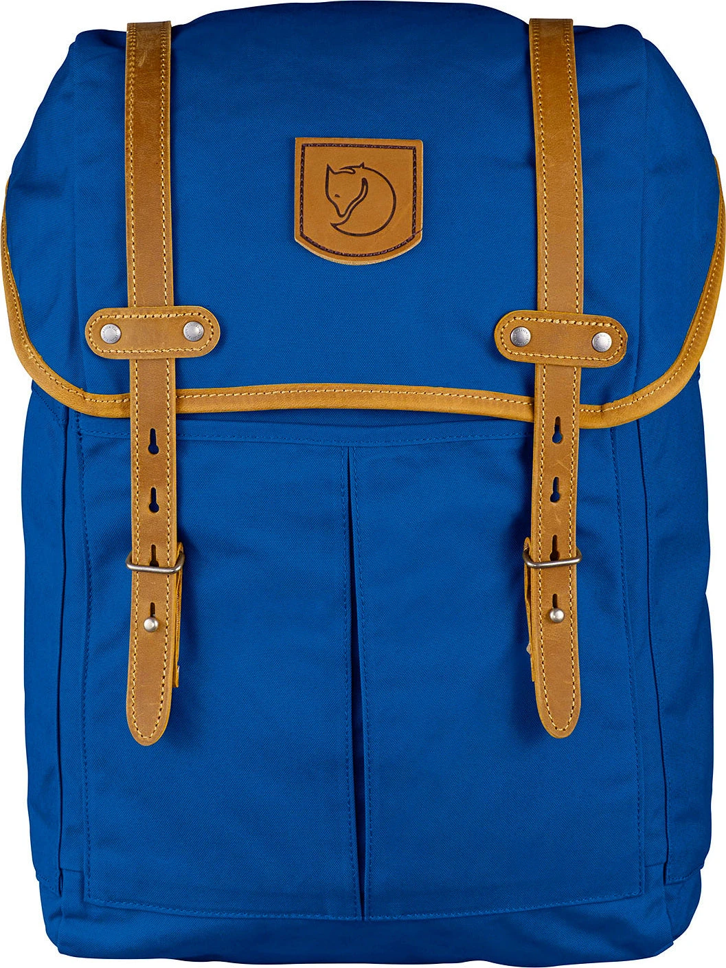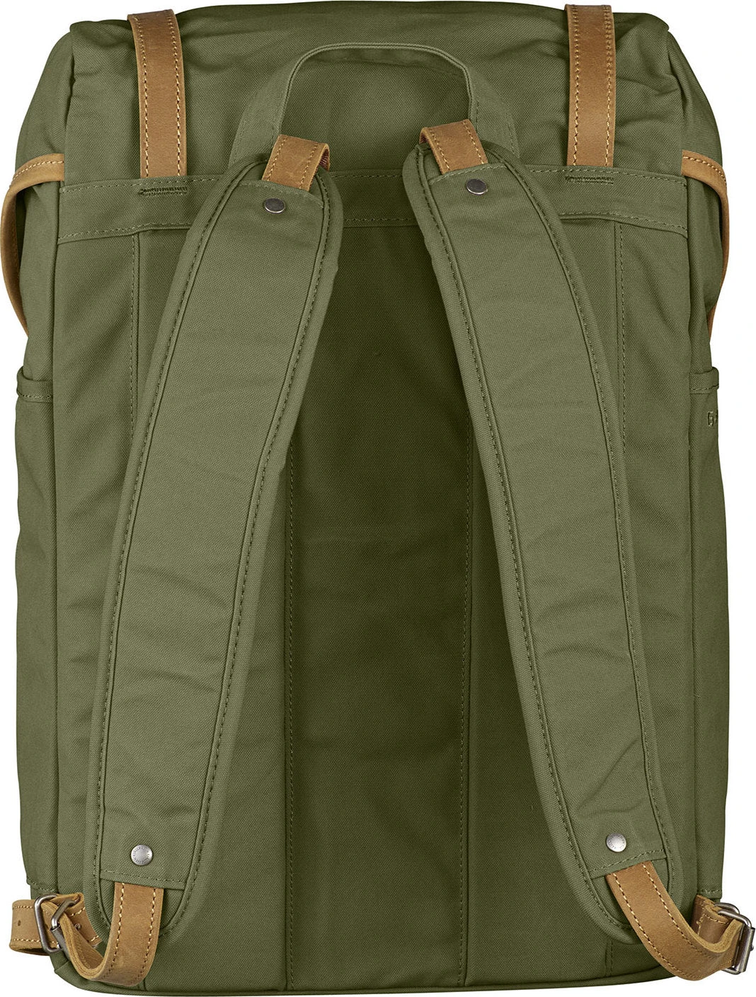The Rucksack No. 21 Medium backpack has the timeless Fjällräven style, which helps it blend into both Scandinavian outdoor settings and the sidewalks of Montreal’s Mile End. It’s made of Fjällräven’s durable, waxed G-1000 HeavyDuty fabric, and features leather straps, trim and detailing. The top-loading main compartment secures with straps and metal buckles and gives way to a generous storage facility that closes with a drawstring. Inside the main compartment, there is snow lock, a pocket for an upright thermos, and a 15” laptop sleeve with a padded bottom, which is removable for use as a seat pad on hiking and camping trips. The pack exterior has a front storage pocket, along with dual side pockets for water bottles and snacks. The Rucksack No. 21 Medium Backpack suspension system includes padded shoulder straps that adjust with floating leather straps.