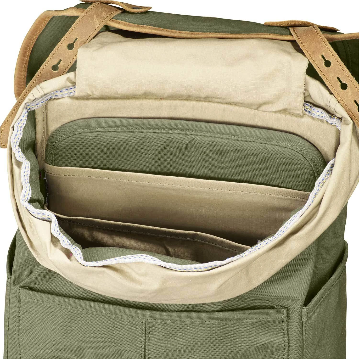 |-|Grand sac à dos de style Fjällräven classique, fabriqué à partir d’une version plus résistante de notre G-1000 ciré. Parfait pour une utilisation quotidienne en ville ou pour passer du temps en forêt. Ses lignes propres et ses détails fonctionnels en cuir de ton naturel lui permettent de répondre à tous les critères pour devenir votre sac préféré pour les nombreuses années à venir. Le compartiment principal se remplit par le haut. Il est équipé d’un système anti-neige et comprend une poche intérieure avec un fond rembourré permettant d’accueillir un ordinateur portable. Il comprend également un coussin de siège amovible et une poche pour ranger un thermos à la verticale. La doublure de couleur vive permet de voir plus facilement ce qu’il contient. Le rabat supérieur est maintenu en place par des sangles qui se fixent sur des tenons métalliques à l’avant. Une grande poche à l’avant et des poches latérales.
