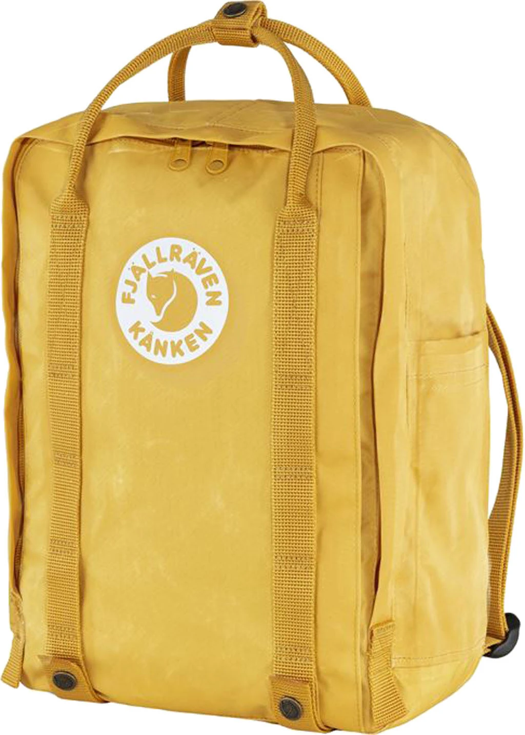 With Tree-Kånken, Fjällräven has explored alternatives to fossil-based raw materials. Made from Pine Weave, a unique fabric produced using more sustainable methods from certified Swedish trees grown close to Fjällräven’s hometown of Örnsköldsvik. The material is waxed, giving it a natural melange effect. The backpack combines the simplicity of Kånken with carefully modified details that give Tree-Kånken its own identity: reflective logo, flat front pocket and a strap for fastening gear underneath.